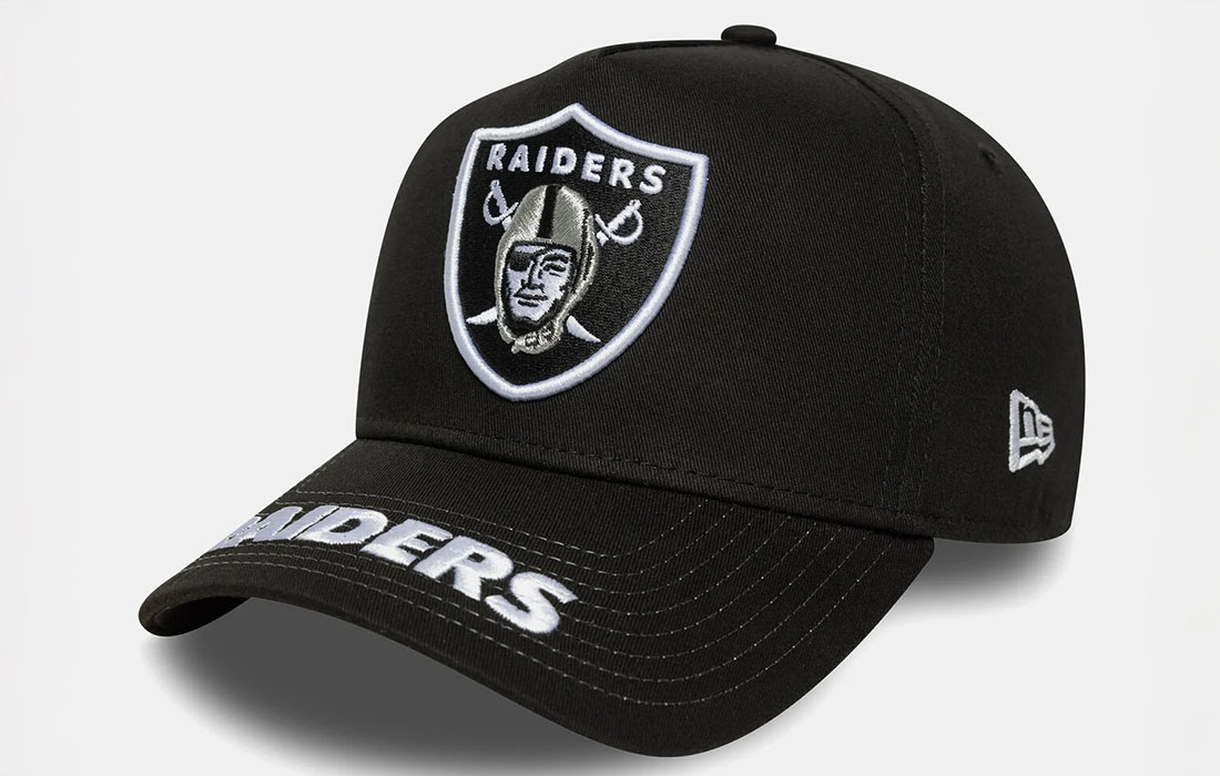 - Raiders wordmark logo on top of visor