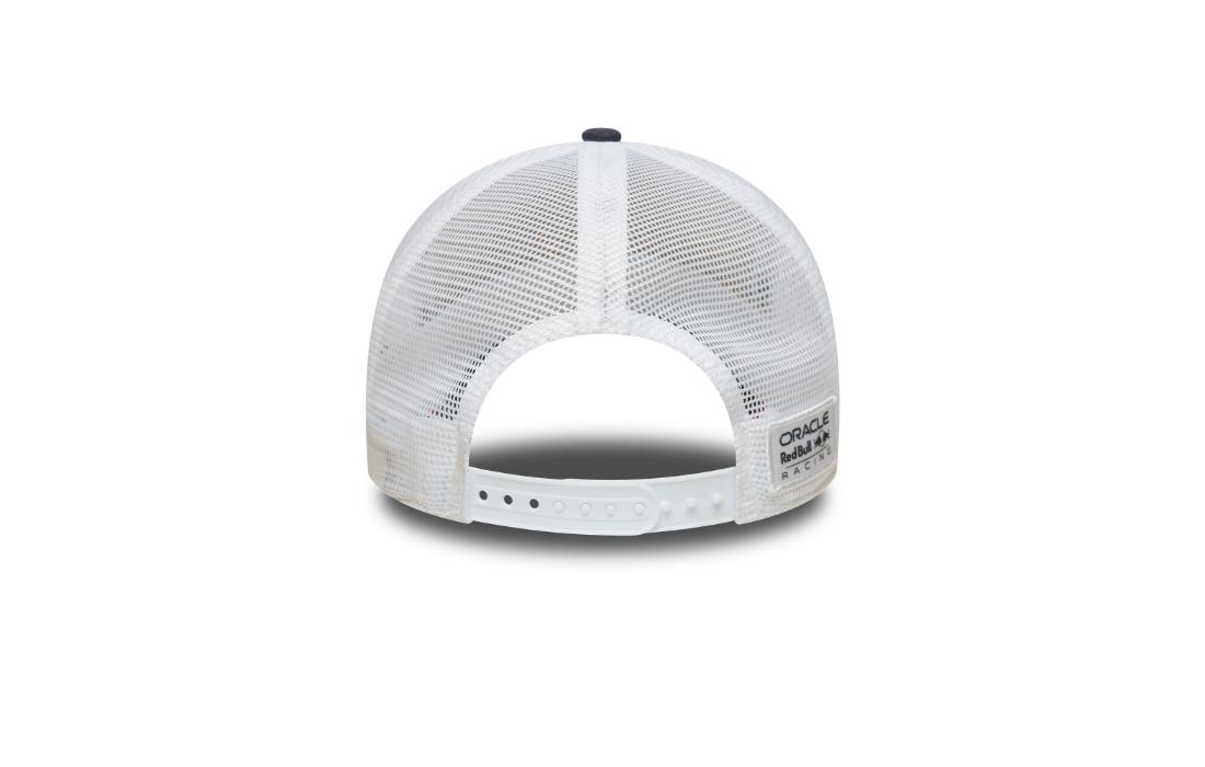 Bring vintage flair to modern F1 style with this bold Red Bull Racing E‑Frame Trucker Cap by New Era. Featuring a structured front panel with retro team branding and a breathable mesh back, this cap blends heritage design with everyday comfort. The navy-and-white color combo, snapback closure, and squared front silhouette make it the perfect statement piece for race days and beyond.